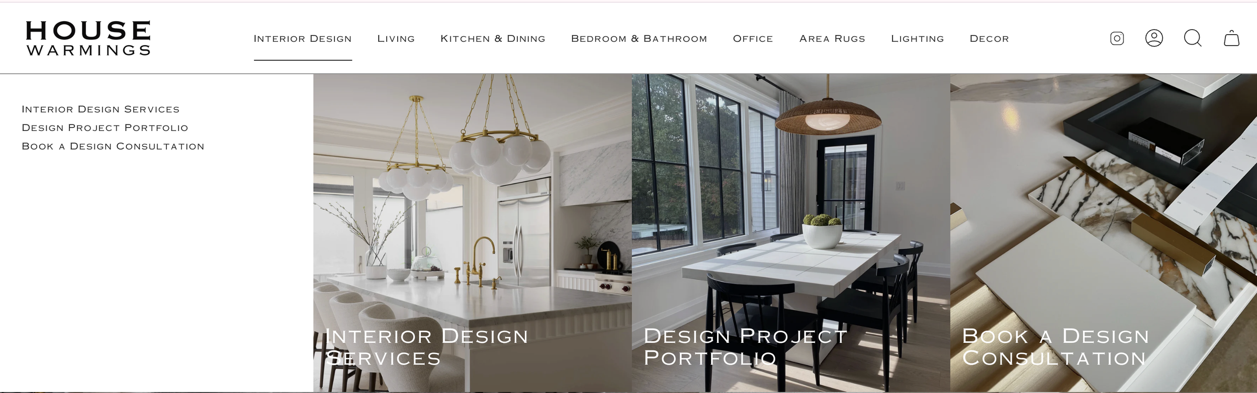 The focus of the House Warmings website was to showcase the interior design projects & services portion of the business in a fresh exciting way while highlighting the showroom selection. We incorporated features of recent design projects with ‘Shop the Look’ functions to build a design look with the same pieces used in the original design and to tell the story of the heritage of the business.